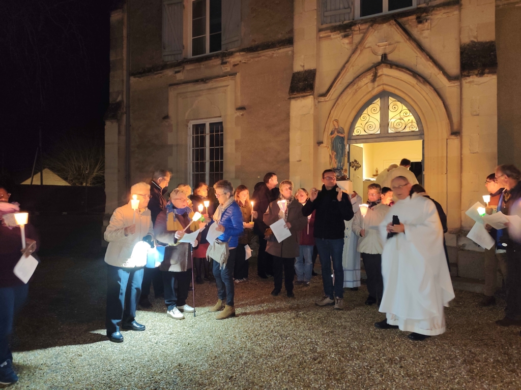 Lundi 8 décembre nous nous sommes allés en procession à l’église St Marcel de Tiercé pour fêter l’Immaculée Conception (départ de la cour du presbytère). Au cours de la messe nos petites sœurs de St François de Morannes ont renouvelé leurs vœux religieux.
